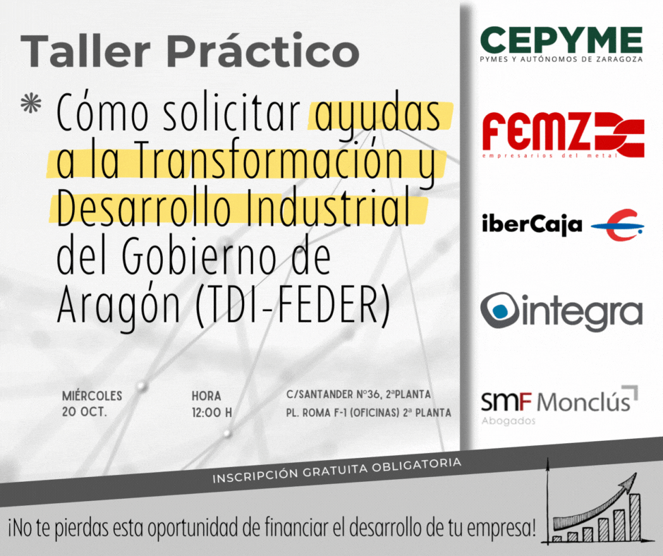 A los efectos de lo previsto en la Ley Orgánica 3/2018, de 5 de diciembre, de protección de datos personales y garantía de los derechos digitales y su normativa de desarrollo, por la que se regula el derecho de información en la recogida de datos, le informamos que sus datos personales quedaran incorporados y serán tratados en un fichero titularidad de CEPYME Aragón, con la finalidad de poder realizar las comunicaciones que sean necesarias para el cumplimiento de las relaciones entabladas entre ambas partes, durante el plazo de vigencia de las mismas y el impuesto por la legislación, no cediéndose dicha información a ningún tipo de organismo, ni público ni privado.