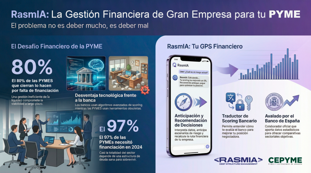 Con esta alianza, CEPYME Aragón y RasmIA persiguen un objetivo claro: democratizar el acceso a una dirección financiera de alto nivel y ayudar a las pymes a comprender mejor cómo las evalúa el sistema financiero (incluidos criterios como el scoring bancario) y qué decisiones pueden mejorar su posición ante entidades, socios o inversores.