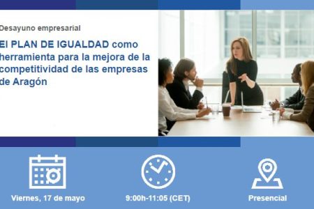 AENOR, en colaboración con la Dirección General de Trabajo del Gobierno de Aragón, organiza el próximo día 17 de mayo, a las 9.00 horas el desayuno empresarial sobre El Plan de Igualdad como herramienta para la mejora de la competitividad de las empresas de Aragón.