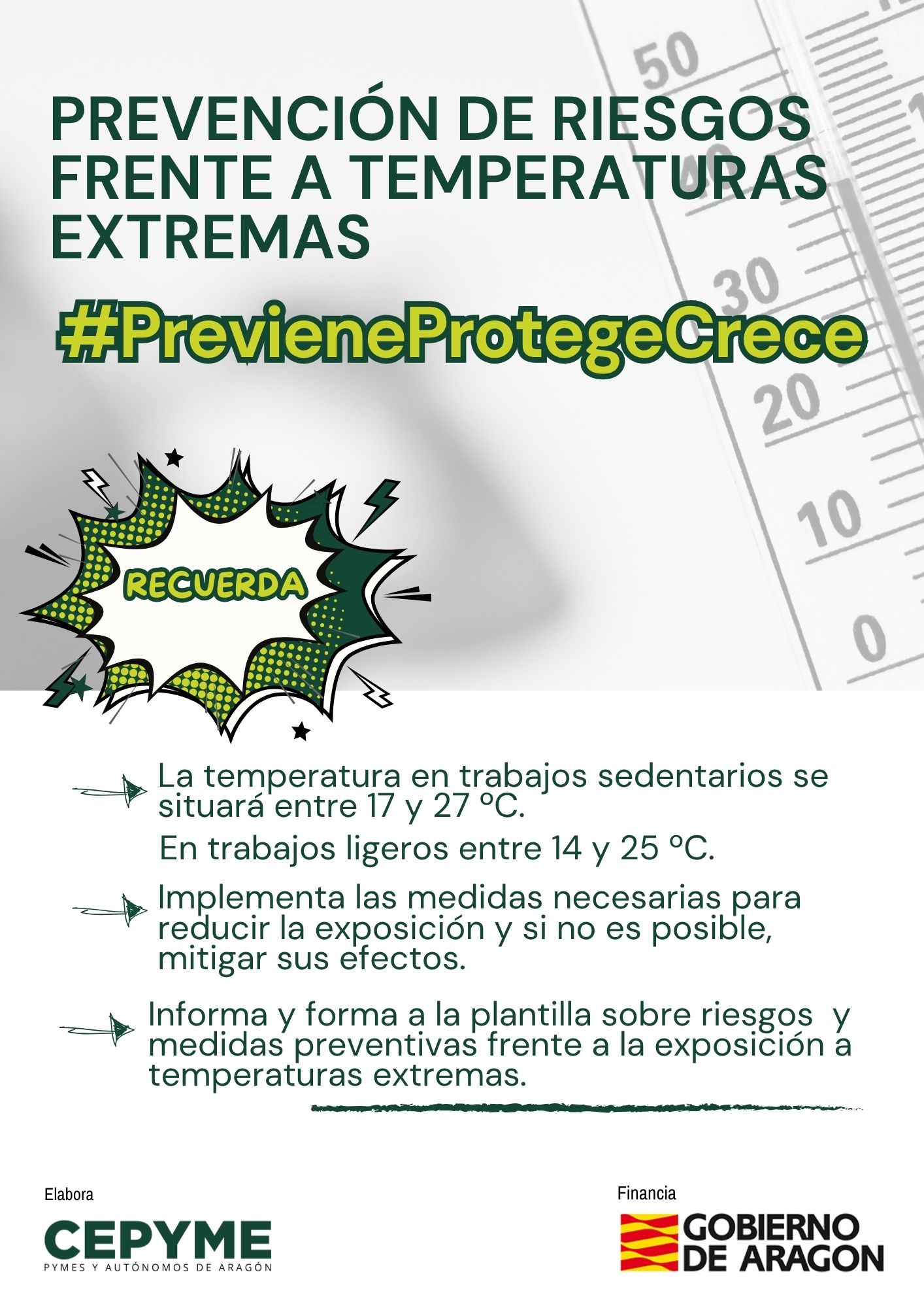 En su apuesta firme por la mejora continua de las condiciones laborales y la promoción de entornos de trabajo seguros, saludables y sostenibles, CEPYME Aragón ha puesto en marcha una nueva campaña de sensibilización en materia de prevención de riesgos laborales bajo el lema #PrevieneProtegeCrece.