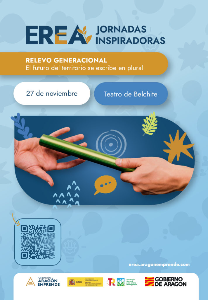 Una de las jornadas tendrá lugar el jueves 27 de noviembre, a las 10:00 h, en el Teatro Municipal de Belchite. En esta sesión la presencia de Alberto Casañal, director general de Despoblación del Gobierno de Aragón, aportará una visión estratégica sobre uno de los grandes retos —y a la vez, una enorme oportunidad— para el desarrollo del territorio: el relevo generacional. Se abordará además como el futuro del emprendimiento rural no depende únicamente de ideas novedosas, sino de la capacidad para conectar generaciones, transmitir conocimiento y garantizar la continuidad de los proyectos.
