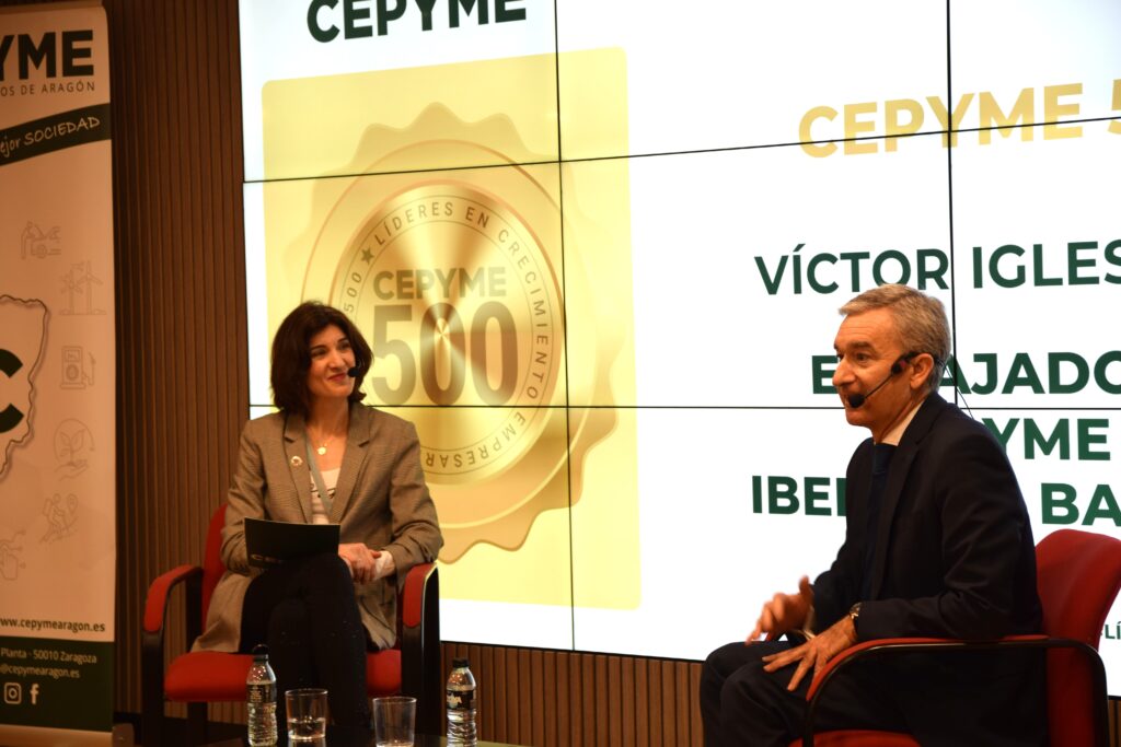 Por ello , y como aporte de valor al encuentro, CEPYME Aragón ha invitado a un pequeño coloquio al consejero delegado de Ibercaja Banco, Víctor Iglesias, en calidad de embajador ZEPYME, quien ha abordado cuestiones clave para la competitividad de las pymes, especialmente en materia de digitalización y organización empresarial.