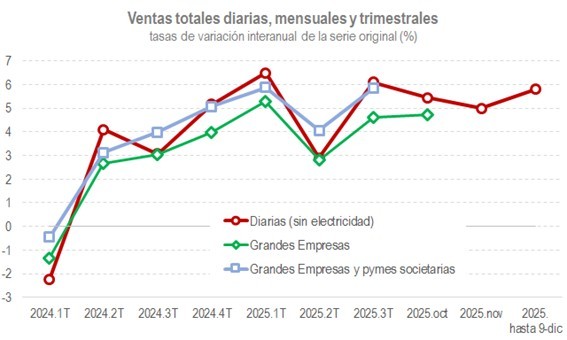 El nuevo Flash incorpora un avance metodológico relevante: permite trabajar con series diarias con un nivel de depuración comparable al de las series mensuales, al estimar directamente la señal tendencial. Esto ofrece una visualización más clara de la evolución subyacente de las ventas interiores y habilita el cálculo de variaciones de muy corto plazo (interdiarias e intersemanales).