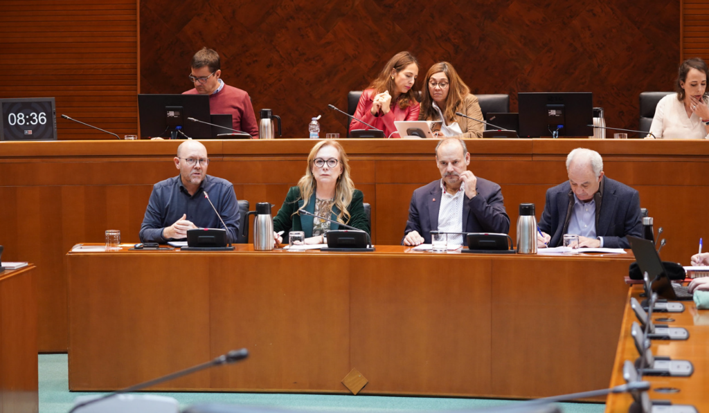 Los cuatro representantes de los Agentes Sociales de Aragón, Manuel Pina, CC.OO Aragón, José Juan Arcéiz, UGT Aragón, Miguel Marzo , CEOE Aragón, y Maria Jesús Lorente , CEPYME Aragón, han comparecido este martes en las Cortes de Aragón, en una sesión solicitada a petición propia, para exponer su visión conjunta sobre la política pública de prevención de riesgos laborales y su colaboración con el Gobierno autonómico.