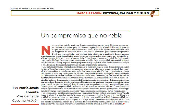 Por eso, cuando hablamos de orgullo, no lo hacemos desde la autocomplacencia, sino desde el compromiso. Porque ser pyme en Aragón es emprender, adaptarse, resistir y avanzar. Y, sobre todo, es no reblar.