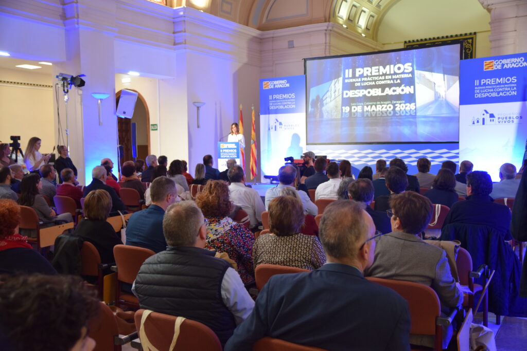 La Dirección General de Despoblación del Gobierno de Aragón ha entregado los galardones de la segunda edición del ‘Premio a las buenas prácticas en la lucha contra la despoblación’, en una gala que ha tenido lugar en la Sala Goya del Departamento de Agricultura, Ganadería y Alimentación, en la Plaza San Pedro Nolasco de Zaragoza.Nueve candidaturas optaban al premio en sus tres categorías: persona física, persona jurídica y entidades locales. En la primera de ellas, la ganadora ha sido Ana Marcén, emprendedora rural con más de 20 años de trayectoria dedicada a crear oportunidades reales para que las personas, especialmente las mujeres, puedan desarrollar su vida y su proyecto profesional sin abandonar el medio rural. En 2006 creó EcoMonegros 03, un proyecto de transformación agroalimentaria pionero y sostenible, y en 2022 fundó Escuela Galanicas, una escuela de negocios y de desarrollo personal que acompaña y ayuda a emprendedoras a liderar sus proyectos para que se puedan quedar en sus pueblos o vuelvan a ellos. Gracias a su labor, más de 300 mujeres han fortalecido su autonomía económica, profesional y emocional en el territorio. Marcén emocionada, ha recibido el premio de manos de la presidenta de las Cortes de Aragón, María Navarro, y sus palabras han ido dirigidas al esfuerzo y a la ilusión con que emprendió su primer proyecto empresarial y ha puesto en valor el papel de las mujeres en el medio rural.