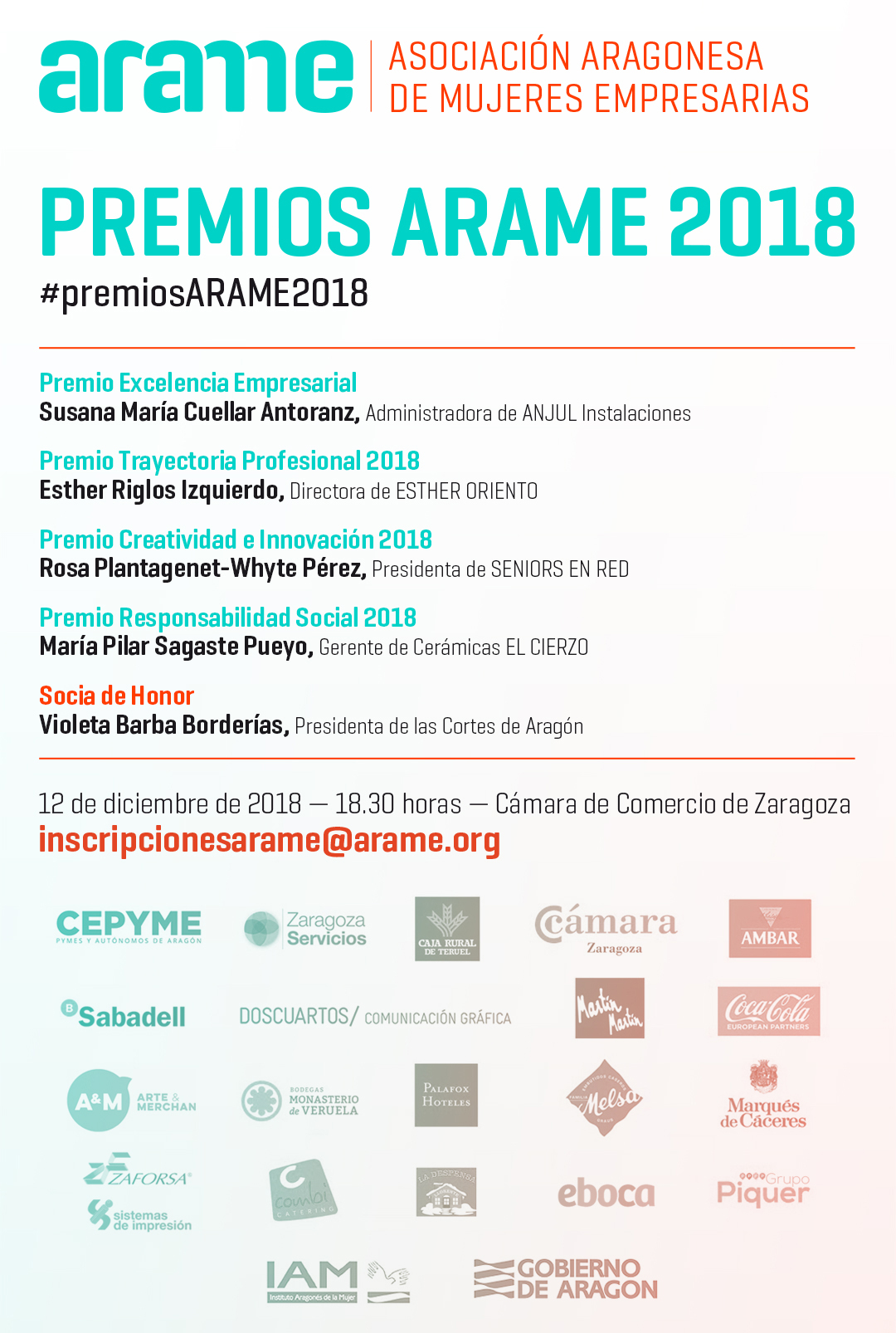 ARAME celebra la XIX edición de unos premios que son ya un referente del talento, capacidad, innovación y responsabilidad social de las mujeres empresarias, profesionales, directivas y gerentes de la Comunidad Autónoma de Aragón.