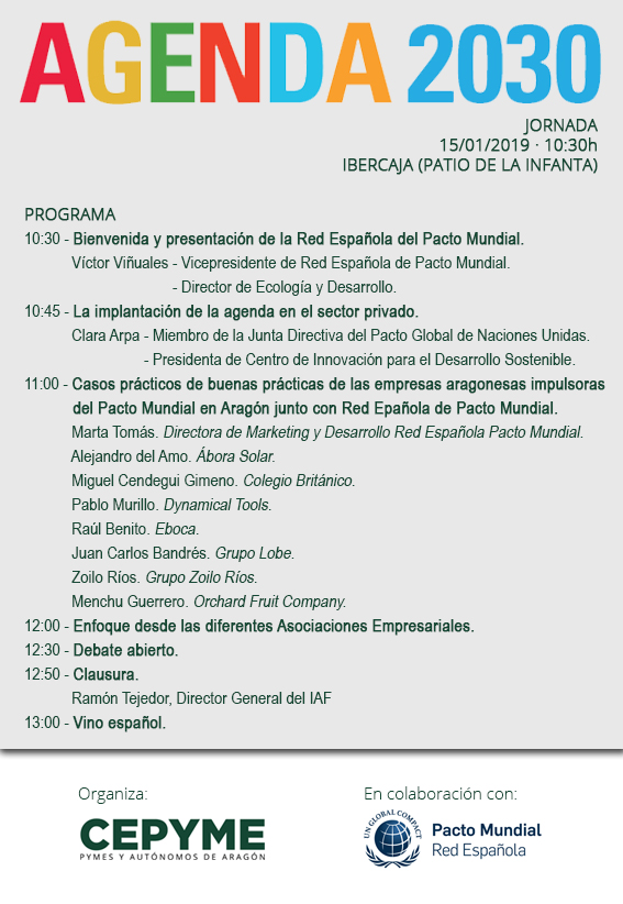 CEPYME Aragón, en colaboración con la Red Española del Pacto Mundial, organiza una Jornada para analizar la implantación de la ‘Agenda 2030’ en el sector empresarial.