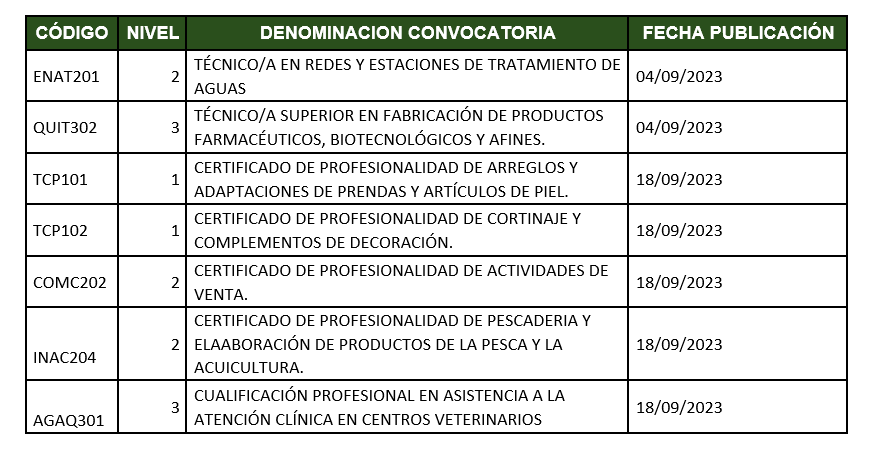 La Agencia de las Cualificaciones Profesionales de Aragón abre 7 nuevas convocatorias permanentes asociadas a títulos de FP y certificados de profesionalidad, no existe periodo de inscripción ya que están abiertas de forma permanente, por lo tanto, podremos inscribirnos en el momento que cumplamos los requisitos de acceso.