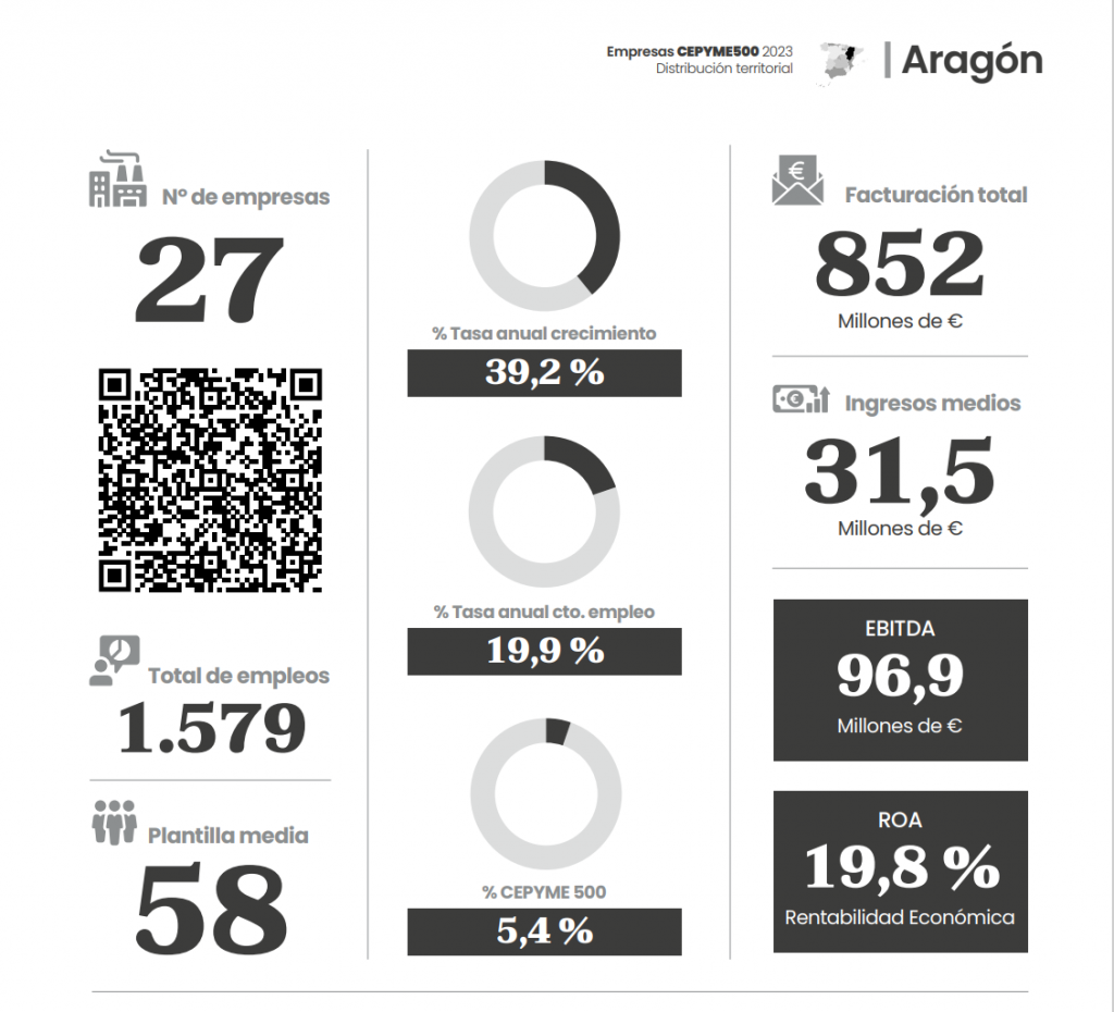 Entre las premiadas 27 pymes que forman parte de la comunidad autónoma, 20 corresponden a la provincia de Zaragoza, seis a las de Huesca y 1 es de Teruel .Las 20 empresas de Zaragoza que aparecen en el selecto ‘ club’ Cepyme 500 son Avensis Agro, Foticos, Lacor Textil, Molinos Afau, Iberian Precast, Farmhispania, World Coconut Trading, Diagnóstica Longwood, Fertilizantes Xiloca, Foodibev Internacional, Grupo Arvamax, I- Directo Mayorista, Panel Sandwich Group, Patatas Gómez, Eigo Gestión de Obras, Ingenierías y Aplicaciones Solares, SA Transportes Aragonesas, Servicios Auxiliares de Telecomunicación y Syder Comercializadora Verde. De Huesca están en el listado Defeder Alcolea, Envases Petit, Carnes Monfort, Frutas Ibarz Ponti, Ganados Agustín y Josan y Aguilar explotaciones agro- ganaderos. De Teruel, Conservas Calanda. Empresas que repiten Ocho de estas pymes fueron reconocidas también el año pasado en el selectivo grupo de las 500 que más crecen en el país. Destacan entre ellas Diagnóstica Longwood, especializada en inmunología de trasplante, y Ergo Gestión de Obras, finalista en los Premios Excelencia Empresarial Aragón que se entregan hoy. Repiten también Envases Petit, Foodibev, Foticos, Ganados Agustín y Josan, Grupo Arvamax, Patatas Gómez y Syder.
