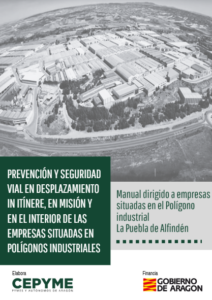 CEPYME Aragón ha desarrollado durante 2024 diversas actuaciones en materia de prevención de riesgos laborales en colaboración con el Gobierno de Aragón. Una de estas acciones ha consistido en la elaboración de la guía «Prevención y seguridad vial en desplazamiento in itinere, en misión y en el interior de las empresas situadas en polígonos industriales. Manual dirigido a empresas situadas en el Polígono industrial La puebla de Alfindén»