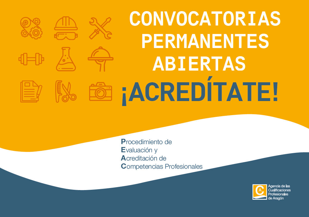 La Agencia de las Cualificaciones Profesionales de Aragón abre la convocatoria de los procesos de evaluación y acreditación de competencias (PEAC) con carácter permanente, referidas a unidades de competencia incluidas en diversos títulos de formación profesional y certificados de profesionalidad ofertados en la Comunidad Autónoma de Aragón.