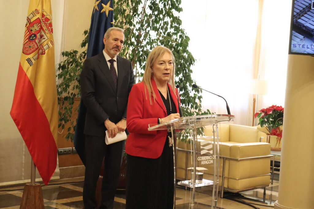 En este sentido, Azcón ha agradecido la implicación de los agentes sociales. Al acto han asistido Miguel Marzo, presidente de CEOE Aragón; María Jesús Lorente, presidenta de CEPYME Aragón; José Juan Arceiz, secretario general de UGT Aragón; y Manuel Pina, secretario general de CC. OO. en la comunidad; así como Benito Tesier, presidente del Clúster de Automoción y Movilidad de Aragón.