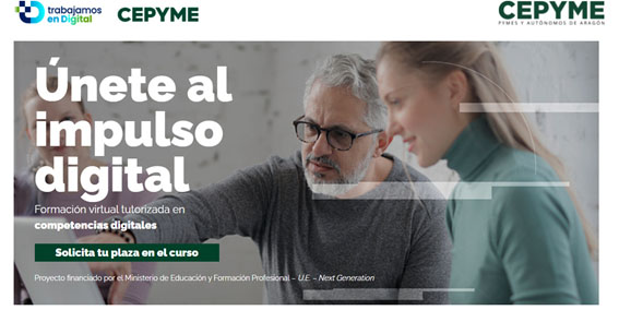 CEPYME Aragón pone a disposición del conjunto de personas trabajadoras y autónomos la formación virtual tutorizada “Digitalización aplicada al Sector Productivo“, que te permitirá adquirir competencias digitales adaptadas al sector productivo y puesto de trabajo
