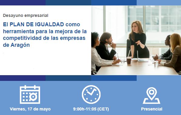 AENOR, en colaboración con la Dirección General de Trabajo del Gobierno de Aragón, organiza el próximo día 17 de mayo, a las 9.00 horas el desayuno empresarial sobre El Plan de Igualdad como herramienta para la mejora de la competitividad de las empresas de Aragón.