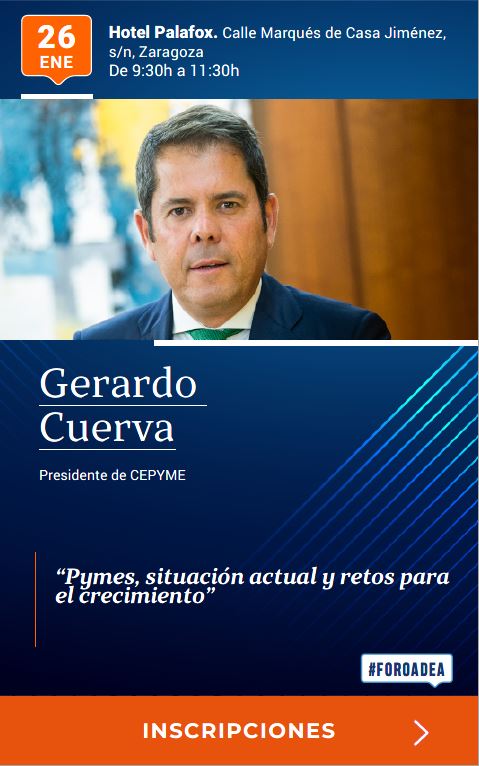 El próximo 26 de enero tendrá lugar el Foro ADEA que, en esta ocasión, contará con Gerardo Cuerva, presidente de CEPYME nacional, que nos hablará sobre “Pymes, situación actual y retos para el crecimiento” .