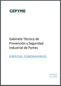 Publicado el Boletín 02/2020 Especial Coronavirus del Gabinete Técnico de Prevención y Seguridad Industrial de PYMES. Este documento contiene una recopilación exhaustiva de aquellas novedades, noticias, publicaciones e informaciones publicadas en los últimos meses en materia de prevención de riesgos laborales.