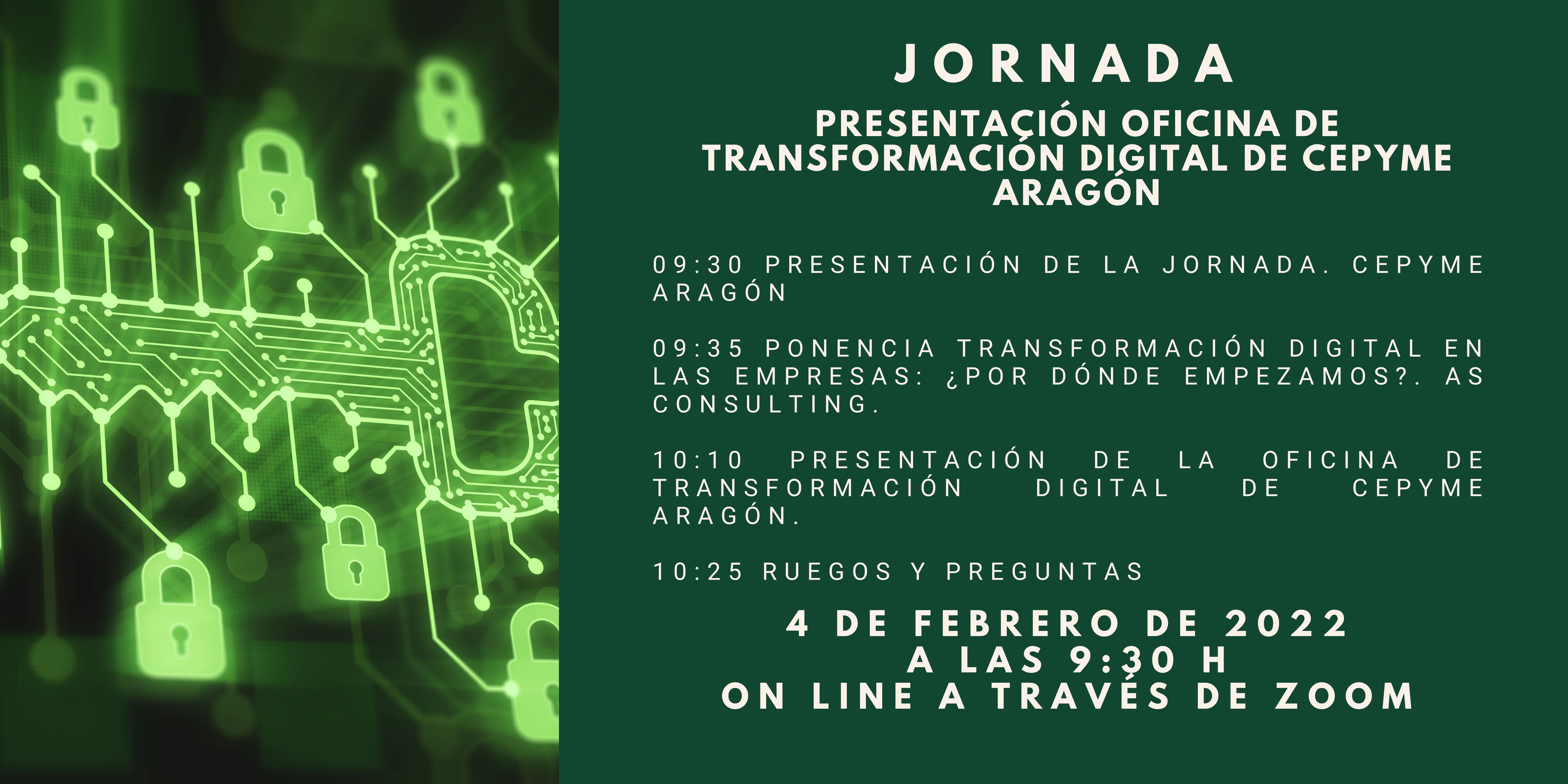 El próximo 4 de febrero a las 9:30 tendrá lugar la presentación de la Oficina de Transformación digital de CEPYME Aragón.