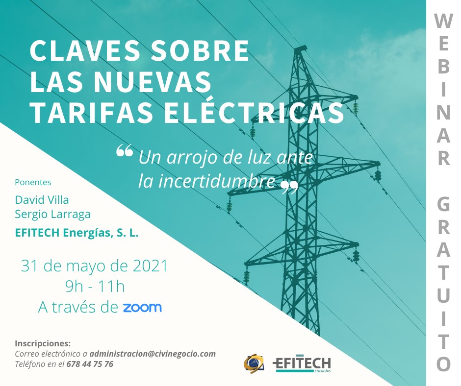 La Asociación Empresarial Cinco Villas, con la colaboración de su asociado Efitech Energías, imparte el próximo 31 de mayo de 9 a 11h un webinar gratuito para explicar en qué van a consistir los cambios más relevantes para que afecten lo mínimo al encarecimiento de la factura eléctrica.
