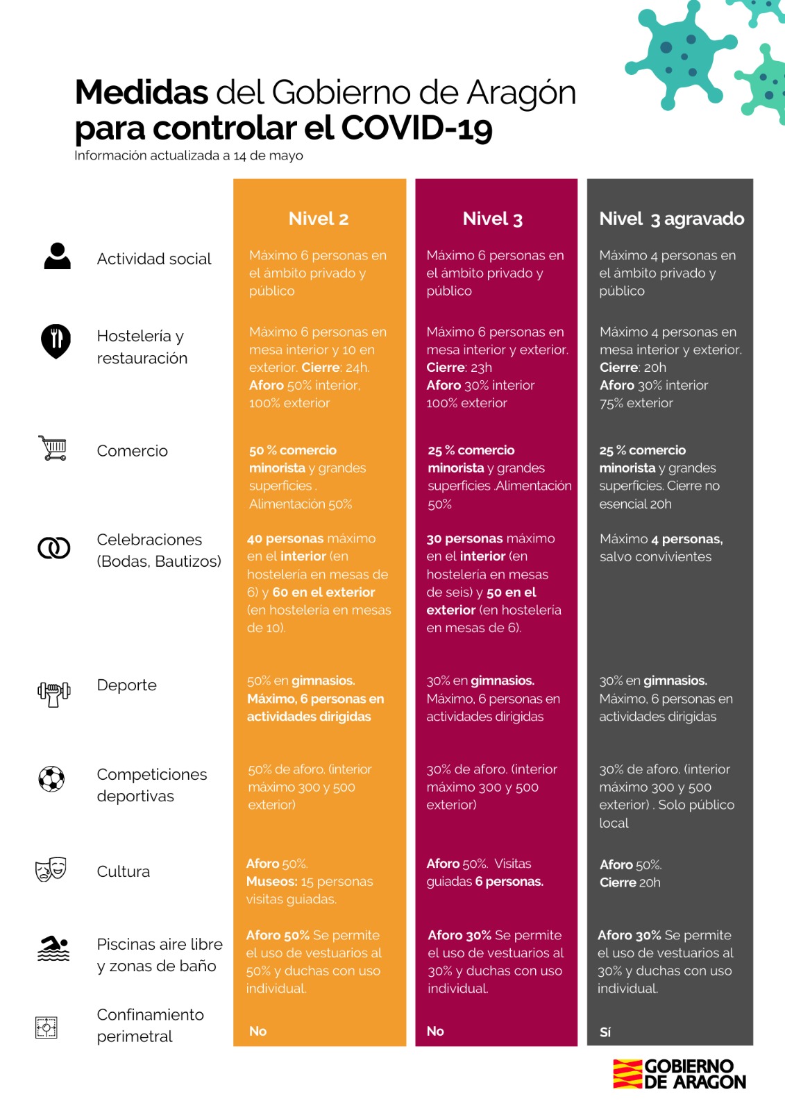 A partir del pasado 2 de mayo, se inició en Aragón una tendencia descendente de la incidencia de covid, que parece haberse ralentizado en los últimos días, situándose ahora en algo menos de 100 por 100.000 habitantes en siete días, lo que sigue siendo un nivel de afectación elevado. Además, la situación varía de unas zonas a otras, lo que condiciona la adopción de medidas de prevención y control en los territorios más afectados y los ajustes de las mismas según cambia la afectación por la enfermedad.