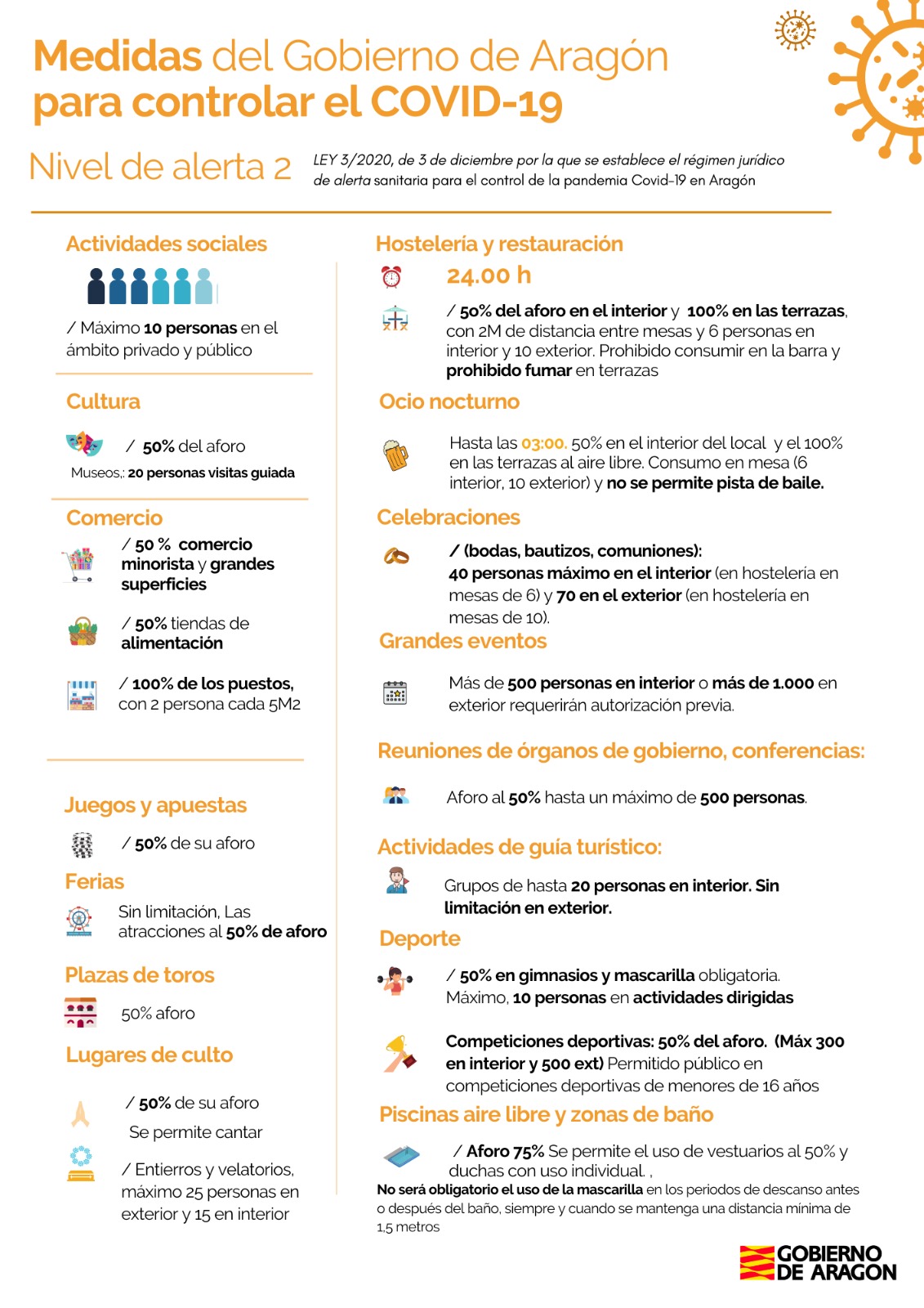 El descenso de la incidencia de COVID-19 en Aragón ha permitido al Departamento de Sanidad flexibilizar las restricciones vigentes en estos momentos con una nueva orden que modula el nivel de alerta 2 que entrarán en vigor a las 00h del 18 de junio.